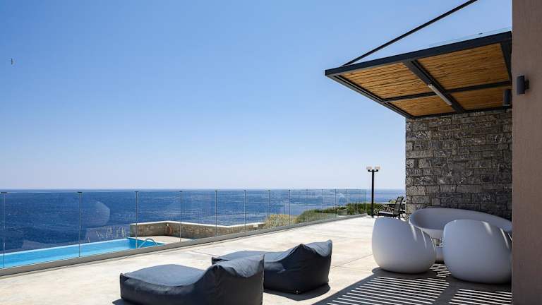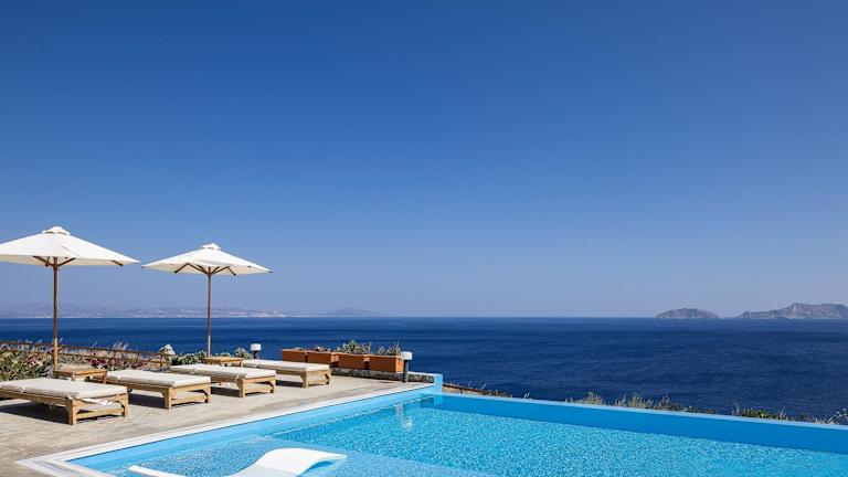 Seafront elegant villas, with infinity pools & devine views! bietet Wohneinheiten mit kostenlosem WLAN, Klimaanlage und saisonalem Außenpool. Die Unterkunft verfügt über eine Terrasse und bietet Meerblick.