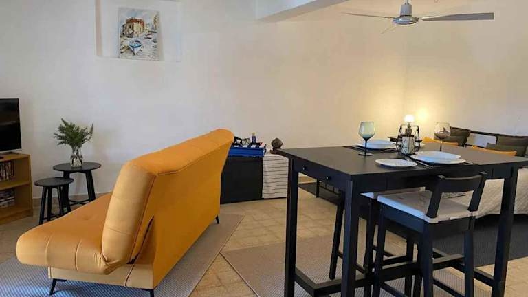 Das Studio Apartment verfügt über Sitzmöglichkeiten, eine Küche mit Kühlschrank und einen Kabel-Flachbild-TV. Handtücher und Bettwäsche werden bereitgestellt.
