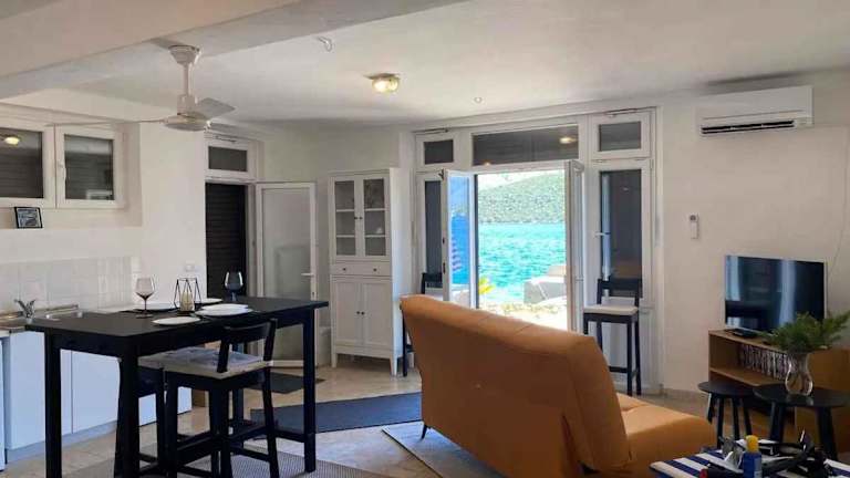 Das Seafront Studio Apartment "Villa Laura" bietet Übernachtungsmöglichkeiten mit Meerblick, einer Terrasse sowie einer Veranda/Patio. Die Unterkunft ist klimatisiert und bietet eine angenehme Atmosphäre für die Gäste.