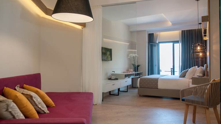 Die klimatisierten Zimmer der Unterkunft sind ausgestattet mit einem Kleiderschrank, einem Wasserkocher, einem Kühlschrank, einem Safe, einem Flachbild-TV, einem Balkon sowie einem eigenen Badezimmer mit Dusche. Zur Ausstattung gehören ebenfalls Bettwäsche und Handtücher.