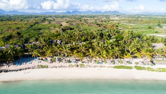 Das Resort befindet sich in Trou d Eau Douce an der Ostküste von Mauritius, in einer gepflegten Gartenanlage mit direktem Zugang zu einem feinsandigen, naturbelassenen Strand. Der Strandbereich ist öffentlich, jedoch mit einem eigenen Hotelabschnitt, ausgestattet mit Hängematten, Liegen und Sonnenschirmen ohne zusätzliche Gebühren. Die Hauptstadt Port Louis ist etwa 50 km entfernt, und der Splash Freizeitpark liegt zirka 10 Autominuten entfernt. Der Flughafen SSR ist etwa 40 km entfernt, was einer Fahrzeit von rund 60 Minuten entspricht.