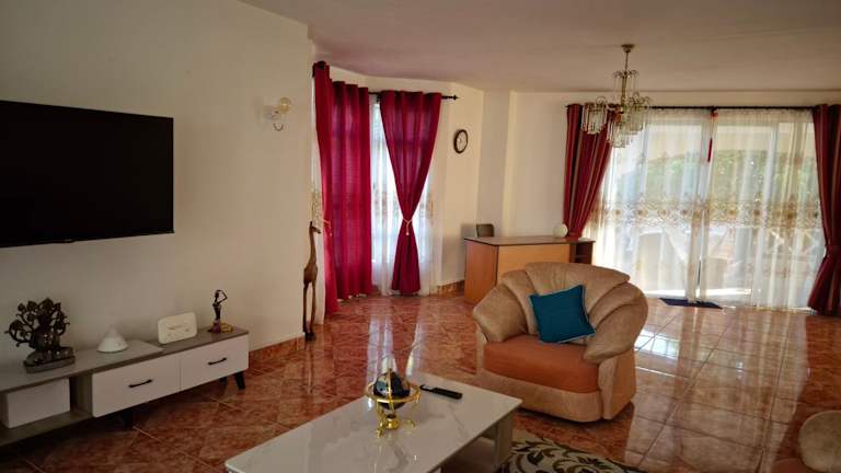 Die Unterkunft besteht aus zwei separaten Schlafzimmern und einem Wohnzimmer. Eine voll ausgestattete Küche ist vorhanden, die mit einem Kühlschrank und einem Ofen ausgestattet ist. Es stehen zudem zwei Badezimmer zur Verfügung. Handtücher und Bettwäsche werden bereitgestellt.