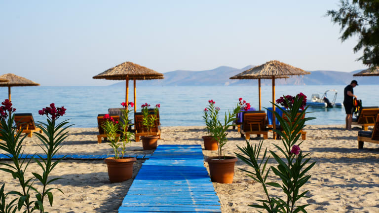 Das Boutique-Hotel Seaside Marmari befindet sich zentral in Marmari, nur etwa 10 Meter vom Strand mit Kieselsteinen entfernt. Die Lage an einer Hauptstraße ermöglicht es, den Urlaubsort bequem zu erkunden.