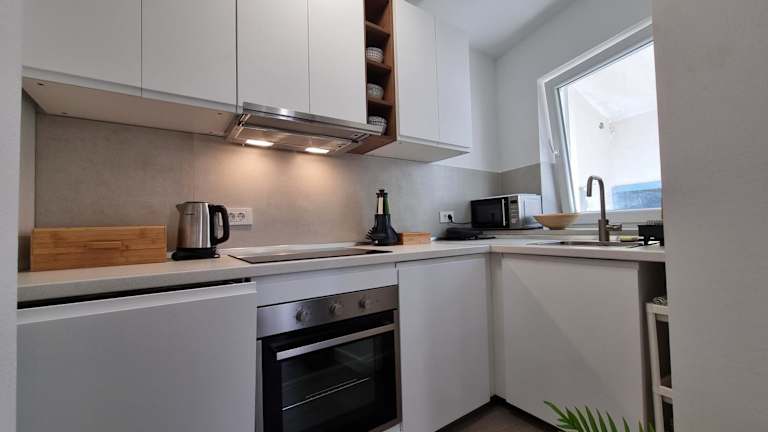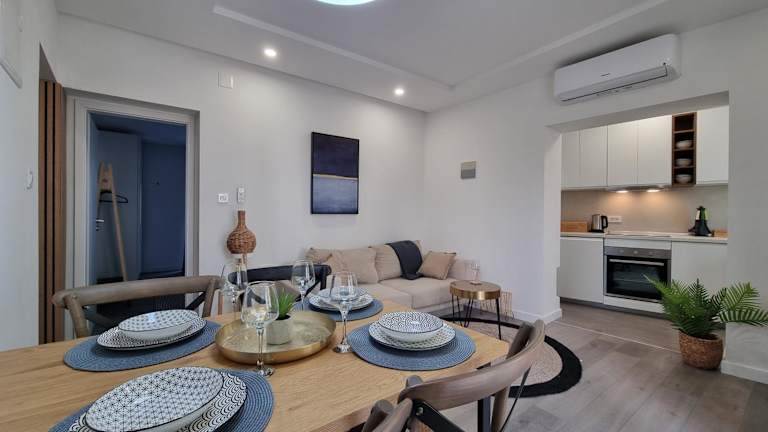 Die Apartments sind mit einem Balkon ausgestattet, der Meerblick bietet. Jedes Zimmer verfügt über eine voll ausgestattete Küche, einen Kühlschrank, einen Sitzbereich sowie ein eigenes Badezimmer mit einer Dusche und einem Haartrockner. Die Unterkunft sorgt für eine angenehme Umgebung durch schallisolierte Zimmer und Klimaanlage.