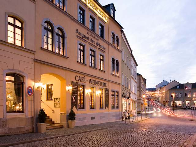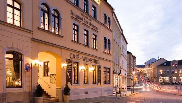 Restaurant "August der Starke" - Wildgerichte, Steaks und Fisch in königlich barockem Ambiente - ab 18:30 geöffnet, sonntags & montags geschlossen Cafe & Pizza "Margaux" - Steinofenpizza, Flammkuchen - locker- gemütliche Atmosphäre, tgl. durchgehend geöffnet. Unser Küchenteam wird von Küchenchef André Schönke und der Unternehmensgründerin Jeanette Steiger geleitet. Wir kochen frisch, ohne Verwendung von Fertigprodukten und achten auf die Qualität unserer Zutaten. Unsere Wildspezialitäten sind aus eigener Jagd, Sülze und Bratwürste selbst hergestellt, Marmeladen selbst gekocht. Wir versprechen Ihnen, dass Ihr Essen mit Liebe zubereitet wird!