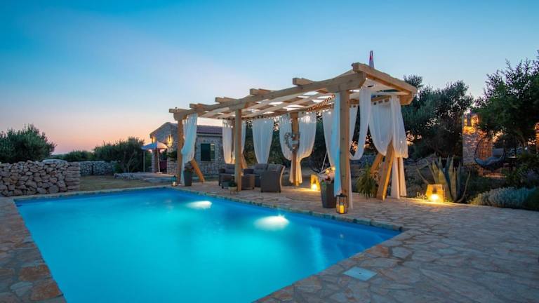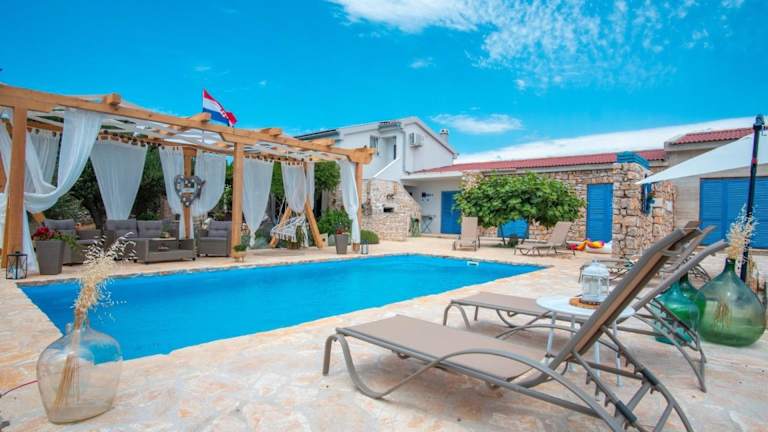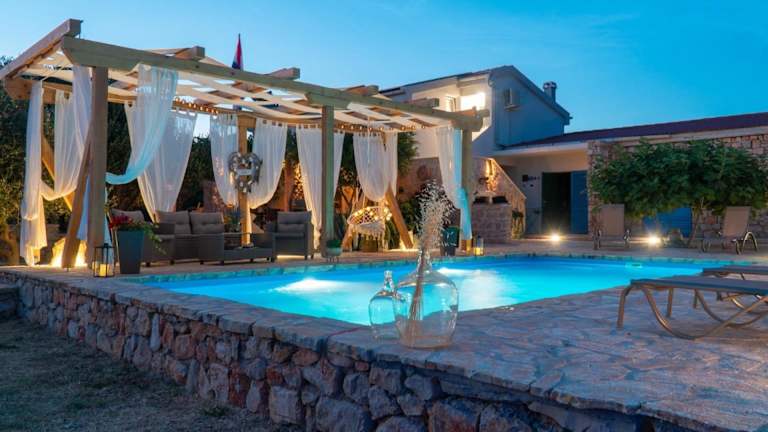 Das Secluded house with a swimming pool Kosljun, Pag - 22238 bietet eine klimatisierte Unterkunft mit einem Außenpool. Die Unterkunft besteht aus einem Ferienhaus mit 5 Schlafzimmern und umfasst Annehmlichkeiten wie kostenloses WLAN und einen Privatparkplatz vor Ort. Die Unterkunft ist Nichtraucherzone und richtet sich an Gäste ab 18 Jahren.