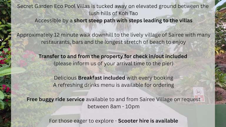 Die Secret Garden Eco Pool Villas befinden sich in Ko Tao, in der Nähe des Sairee Strandes, der etwa 1,3 km entfernt ist. Auch der Mao Bay Beach ist in einer Entfernung von 2,2 km erreichbar.