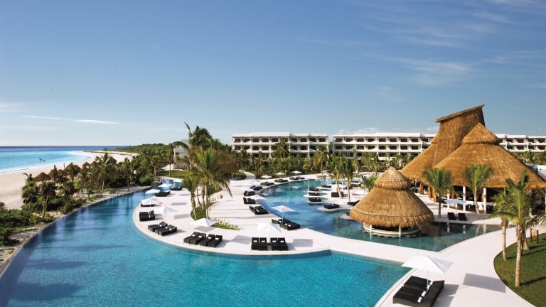 Das 5* Secrets Maroma Beach Riviera Cancun gehört zu Hyatt's Inclusive Collection und liegt direkt am weißen Traumstrand von Maroma. Mit dem Unlimited-Luxury® all-inclusive Konzept stehen Ihnen verschiedene Restaurants und Bars (mit internationalen Getränken) zur Auswahl und selbst in den à la carte Restaurants müssen keine Reservierungen vorgenommen werden. Dank einer täglich aufgefüllten Minibar, 24h Zimmerservice, Pool und Strand Bedienservice, kostenlosem Wifi und einem reichen Angebot an Aktivitäten und Unterhaltungsprogramm fehlt Ihnen hier an nichts. Wer neugierig ist und unterschiedliche Gourmetrestaurants und Unterhaltungsprogramme nutzen möchte, kann mit dem Sip, Savour & See Dine-around Programm teilnehmende Schwesterhotels der Inclusive Collection am Abend nutzen. Wer es etwas exklusiver mag, dem werden die besonderen Serviceleistungen gefallen, die bei den Preferred Club Zimmern hinzukommen. Hier muss kein all-inclusive Armband getragen werden.