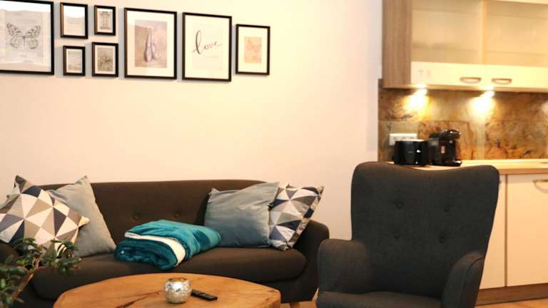 Die Apartments sind mit einem Balkon und Bergblick ausgestattet. Jedes Apartment bietet einen Sitzbereich, einen Satelliten-Flachbild-TV sowie eine voll ausgestattete Küchenzeile mit Kühlschrank, Geschirrspüler, Ofen, Mikrowelle, Herdplatte, Kaffeemaschine und Wasserkocher. Des Weiteren ist ein eigenes Bad mit Dusche und Haartrockner vorhanden.