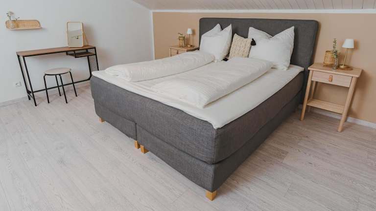 Die Ferienwohnung bietet zwei Schlafzimmer, ein Wohnzimmer, ein Badezimmer mit Dusche sowie eine gut ausgestattete Küche mit Kühlschrank und Geschirrspüler. Handtücher und Bettwäsche werden zur Verfügung gestellt.