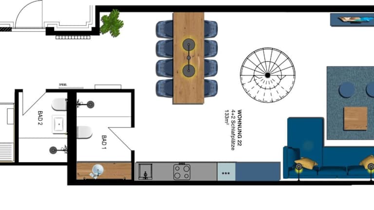 Die Ferienwohnung verfügt über 1 Schlafzimmer, ein Wohnzimmer, eine voll ausgestattete Küche mit Kühlschrank und Essbereich sowie ein Badezimmer. Handtücher und Bettwäsche sind vorhanden.
