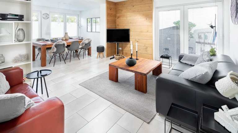 Seehaus 48 ist ein Ferienhaus, das eine Terrasse und einen Garten bietet. Die Unterkunft entspricht den Anforderungen einer Nichtraucherunterkunft und ist für Familien geeignet.