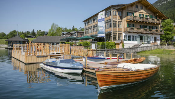 Das Seehotel Grundlsee befindet sich in idyllischer Lage direkt am Ufer des Grundlsees. Von hier aus haben die Gäste einen atemberaubenden Blick auf den See und das beeindruckende Tote Gebirge. Das Hotel ist der ideale Ausgangspunkt, um die umliegende Natur zu erkunden und Outdoor-Aktivitäten wie Wandern oder Skifahren nachzugehen. In der Nähe befinden sich auch ein Golfplatz und eine Therme, die zum Entspannen und Genießen einladen.