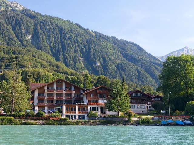 Das Seehotel Bönigen befindet sich in einer malerischen Lage direkt am Ufer des Brienzersees. Von hier aus haben Sie eine atemberaubende Aussicht auf den See und die umliegenden Berge. Das Hotel liegt nur 3 km von Interlaken und 5 Autominuten vom Zentrum von Bönigen entfernt. Die Bushaltestelle Schlössli befindet sich nur 20 m vom Hotel entfernt und die Bushaltestelle Bönigen am See ist 80 m entfernt. Diese günstige Lage ermöglicht es Ihnen, die Region bequem zu erkunden und die vielen Attraktionen und Aktivitäten in der Umgebung zu genießen.