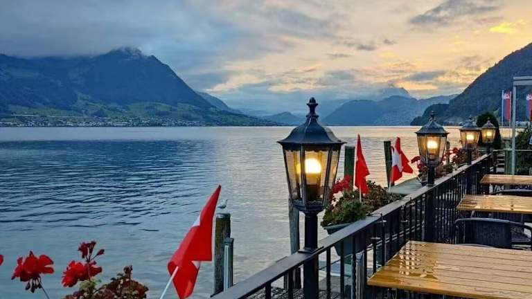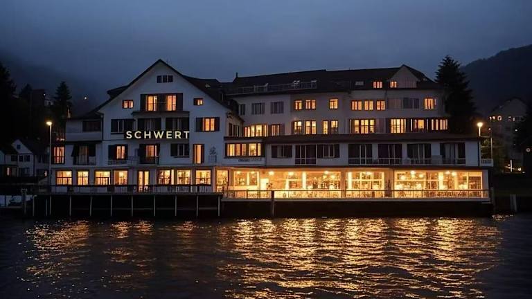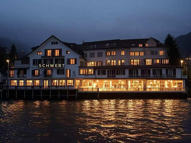 Das Seehotel Schwert liegt in Gersau und bietet eine einzigartige Lage direkt am Ufer des Vierwaldstättersees. Gäste können die malerische Umgebung erkunden und die Ruhe und Schönheit der Natur genießen. Die Bushaltestelle Gersau-Schiffstation ist nur 20 m vom Hotel entfernt und bietet eine bequeme Anbindung an die umliegenden Städte und Sehenswürdigkeiten wie Brunnen und Schwyz.