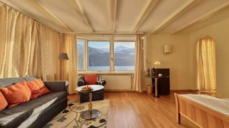 Das Seehotel Schwert in Gersau bietet eine idyllische Lage direkt am Ufer des Vierwaldstättersees. Mit einem Balkon und Seeblick in allen Zimmern können die Gäste die atemberaubende Aussicht auf den See genießen. Die Zimmer sind komfortabel eingerichtet und verfügen über ein eigenes Badezimmer. Kostenlose Privatparkplätze stehen den Gästen zur Verfügung. Die Bushaltestelle Gersau-Schiffstation befindet sich nur 20 m vom Hotel entfernt und ermöglicht eine einfache Anbindung an die umliegenden Städte Brunnen und Schwyz.