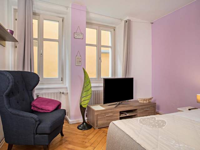 Die Ferienwohnung verfügt über ein Schlafzimmer, ein Badezimmer mit Dusche und ist mit Kabel-TV ausgestattet. Handtücher und Bettwäsche werden bereitgestellt. Die Unterkunft bietet zudem Nichtraucherzimmer und Heizung.