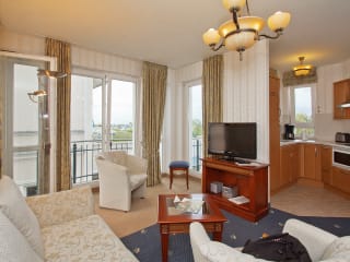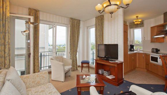 Diese 4-Sterne-Ferienwohnungen und Apartments genießen eine zentrale Lage im Ostseebad Ahlbeck direkt an der Strandpromenade und in unmittelbarer Nähe zur ältesten Seebrücke Deutschlands. Hier auf der schönen Insel Usedom liegt die SEETELHOTEL Ostseeresidenz Ahlbeck inmitten von wunderschöner Architektur im Seebadstil. Fast alle Suiten und Ferienapartments genießen eine Aussicht auf die Ostsee, den Strand und die vorbeifahrenden Schiffe. Freuen Sie sich morgens auf ein reichhaltiges Frühstücksbuffet und genießen Sie ein köstliches Buffet am Abend. Die Ostseeresidenz Ahlbeck ist ein idealer Ausgangspunkt zur Erholung in dieser natürlichen Umgebung, zum Einatmen der frischen Ostseeluft und zur Erkundung der Insel Usedom mit ihren langen Sandstränden. Lassen Sie sich von den Wellnesseinrichtungen des Hotels verwöhnen und nehmen Sie ein Bad im Innenpool. Darüber hinaus stehen Ihnen die Rezeption und die Wellnesseinrichtungen des Partnerhotels SEETELHOTEL Ostseehotel Ahlbeck zur Verfügung.