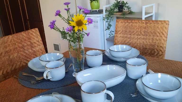 Die Unterkunft beinhaltet eine Gemeinschaftsküche, in der sich die Gäste selbst versorgen können.