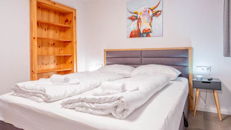 Die Ferienwohnung verfügt über ein Schlafzimmer, eine Küche mit Kühlschrank und Ofen, einen TV, einen Sitzbereich sowie zwei Badezimmer, die mit einer Dusche ausgestattet sind. Handtücher und Bettwäsche werden bereitgestellt.
