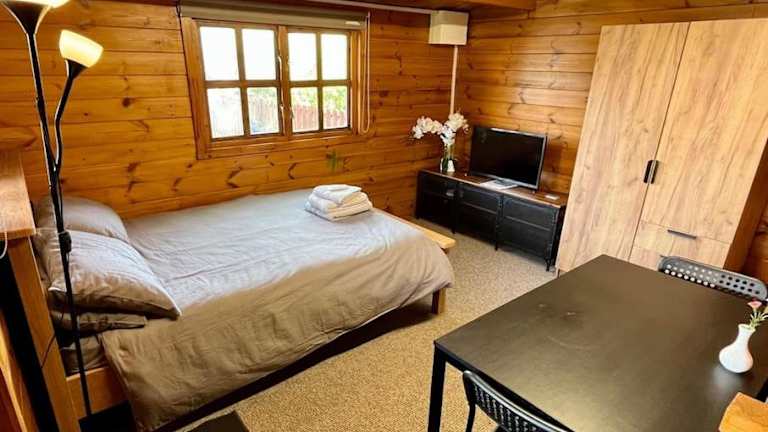 Das Self catering log cabin bietet eine gemütliche und unabhängige Unterkunft in Form eines Ferienhauses, das mit modernen Annehmlichkeiten ausgestattet ist.