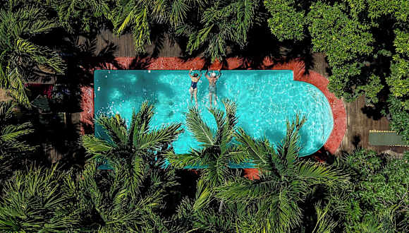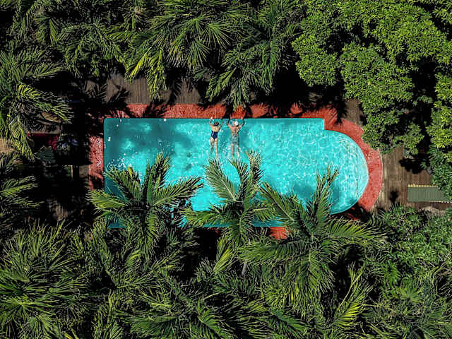 Entspanntes Hostel mit Pool und toller Aussicht aufs Meer von den oberen Teilen