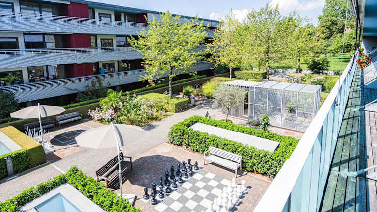 Die Senevita Residenz & Apartments Muri bei Bern liegt in Muri, nur 4 km vom Zentrum von Bern entfernt. Die Lage bietet eine gute Anbindung an öffentliche Verkehrsmittel, da sich die Bushaltestelle Muri nur 200 m von der Unterkunft entfernt befindet. In der Umgebung finden Sie auch viele Geschäfte, die zu einem Einkaufsbummel einladen. Die Residenz liegt in einer ruhigen Gegend und bietet eine entspannte Atmosphäre für Ihren Aufenthalt.