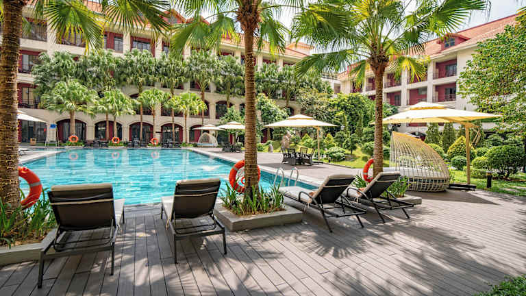 Das Senna Hue Hotel bietet eine Vielzahl von Annehmlichkeiten, darunter eine 24-Stunden-Rezeption, Zimmerservice und ein freundliches Personal, das den Gästen bei Fragen behilflich ist. Die Unterkunft verfügt über ein Restaurant, einen Garten, eine Terrasse und mehrere Pools, die Entspannung bieten. Die Hotel-Eröffnung datiert auf das Jahr 2019. Es werden verschiedene Dienstleistungen, wie Gepäckaufbewahrung, Geldautomat und Fahrradverleih, angeboten.
