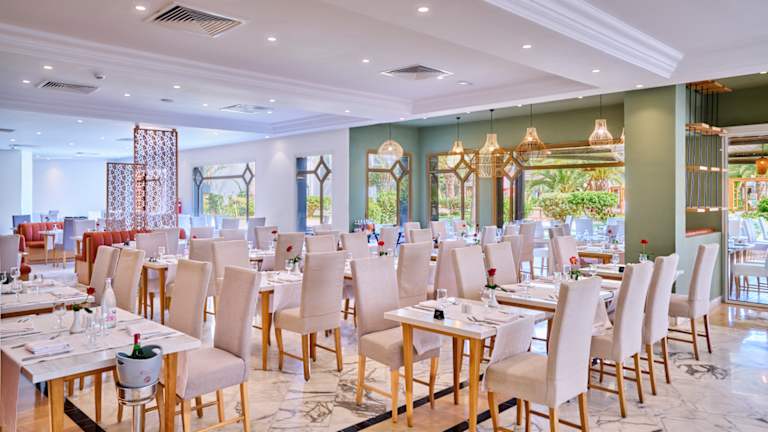 All Inclusive Plus: Frühstück (Buffet), Langschläferfrühstück bis 11 Uhr, Mittagessen (Buffet), Abendessen (Buffet), Abendessen im à-la-carte-Restaurant, Getränke kostenfrei (Softdrinks, Mineralwasser, Kaffee/Tee, Tischwein, Bier, Säfte, Hauswein, Cocktails, Longdrinks, lokale Spirituosen, 8-0 Uhr), Snacks (12:30-15 Uhr), Kaffee/Tee und Gebäck (15-17 Uhr), Weihnachtsdinner, Silvesterdinner Restaurant ALYSSA (im All-In-Paket inbegriffen) * Buffet, internationale Küche * Täglich geöffnet von Montag bis Sonntag * Frühstück von 04:00 bis 11:00 Uhr * Mittagessen von 12:30 bis 15:00 Uhr * Abendessen von 18:30 bis 21:30 Uhr Restaurant DIDON (im All-In-Paket inbegriffen) * Buffet, internationale Küche * Täglich geöffnet von Montag bis Sonntag * Spätes Frühstück von 11.00 Uhr bis 12.30 Uhr * Mittagessen von 12:30 bis 15:00 Uhr, mediterrane und internationale Küche * Snacking von 15:00 bis 17:30, Pizzas, Pfannkuchen, Hamburger, Waffeln, Gebäck Restaurant BARMARILLIA (im All-In-Paket enthalten, auf Reservierung) * Buffet, mediterrane Küche, Holzofenpizza * Täglich geöffnet außer Mittwoch * Abendessen von 19:00 bis 21:30 * Spätes Abendessen von 22:00 bis 04:00 Restaurant LE BERBÈRE (im All-In-Paket inbegriffen, auf Reservierung) * Buffet, traditionelle und orientalische Küche * Jeden Tag außer Mittwoch geöffnet * Abendessen von 19.00 bis 21.30 Uhr Strandrestaurant à la carte PALMARILLIA (Service gegen Aufpreis) * Mediterrane und internationale Küche à la carte, Holzofenpizza * Täglich geöffnet von Montag bis Sonntag * Mittagessen von 13:00 bis 17:00 Uhr * Abendessen von 19:30 bis 22:00 Uhr