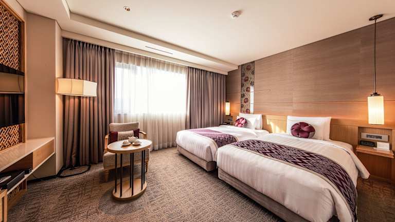 Das Royal Hotel Seoul verfügt über 310 Zimmer, darunter 19 Suiten. Die Zimmer bieten einen atemberaubenden Blick auf die Stadt und sind mit einer Zentralheizung, einer Klimaanlage und einem Flachbild-TV ausgestattet. Die Suiten bieten zusätzlich AI-Lautsprecher, über die Sie die Beleuchtung, den Fernseher, die Raumtemperatur und vieles mehr steuern können. Die Badezimmer sind mit einer Badewanne und kostenlosen Pflegeprodukten ausgestattet. WLAN nutzen Sie in allen Zimmern kostenfrei.