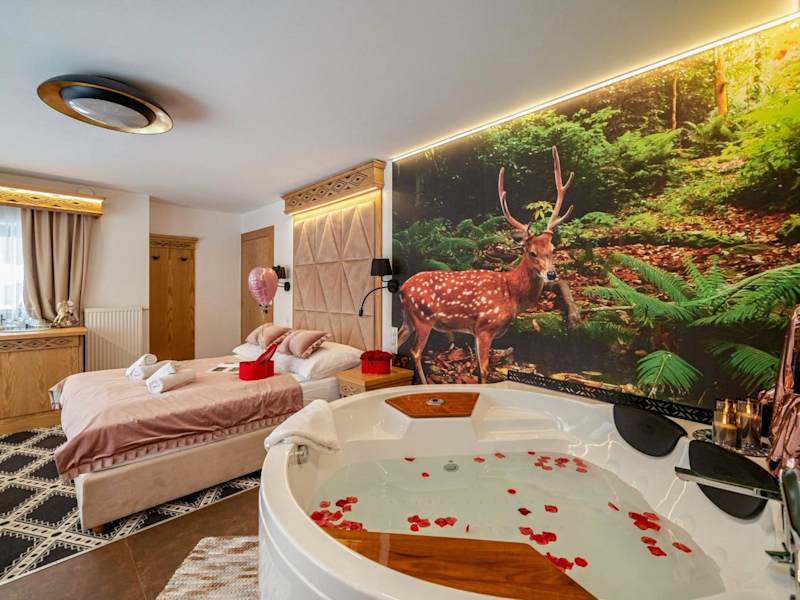 Die Serce Tatr Residence Zakopane - blisko Krupówek ist die perfekte Unterkunft für Ihren Aufenthalt in Zakopane. Hier finden Sie komfortable Zimmer mit Balkon oder Terrasse, kostenfreiem WLAN und Flachbild-TV. Das Hotel bietet auch kostenlose Fahrräder und einen schönen Garten, in dem Sie sich entspannen können. Die Lage ist ideal, in der Nähe von beliebten Sehenswürdigkeiten wie dem Nationalpark Tatra, dem Wasserpark Zakopane und dem Bahnhof Zakopane.