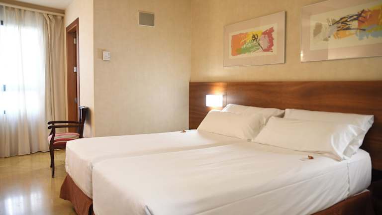 Die Zimmer sind mit Klimaanlage und Heizung ausgestattet und bieten eine komfortable Ausstattung mit Doppelbetten, Minibar, Safe, Schreibtisch sowie einem TV-Gerät mit Satelliten-/Kabelempfang. Die Badezimmer verfügen über eine Dusche, Badewanne sowie Bidet und bieten Haartrockner und Kosmetikartikel. Rollstuhlgerechte Zimmer sind ebenfalls verfügbar.