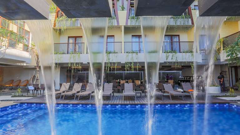 Das Serela Legian by KAGUM Hotels liegt in zentraler Lage in Legian, nur 5 Minuten zu Fuß vom Strand entfernt. In der Nähe finden Sie auch das Stadtzentrum von Legian mit seinen vielen Einkaufs- und Unterhaltungsmöglichkeiten. Der Flughafen Ngurah Rai ist etwa 30 Fahrminuten entfernt.