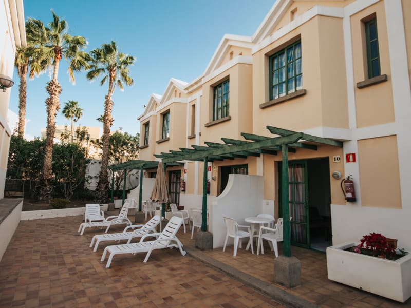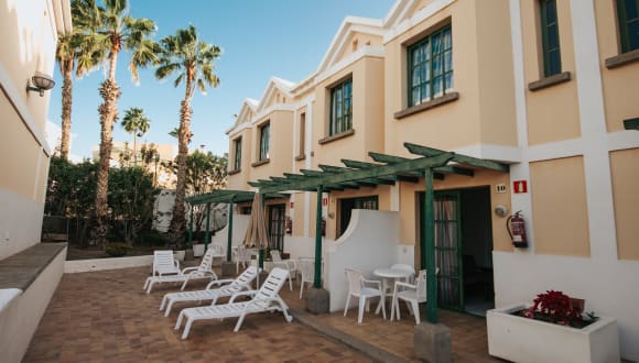 Angenehme Ferienanlage, in der Siedlung Campo Internacional von Maspalomas, einem berühmten Urlaubsort im Süden von Gran Canaria. Von hier aus sind es nur 100 Meter bis zu Supermärkten und Restaurants, 300 Meter zum städtischen Markt von San Bartolomé, 700 Meter zum Einkaufszentrum Faro 2 und 500 Meter zu einem Vergnügungspark. Der berühmte Strand von Maspalomas liegt 2,500 Meter von der Anlage entfernt. Golfspielern steht ganz in der Nähe ein Golfplatz zur Verfügung.