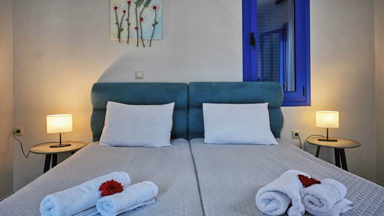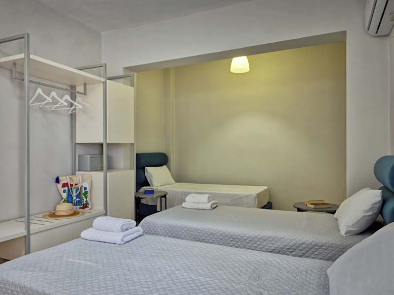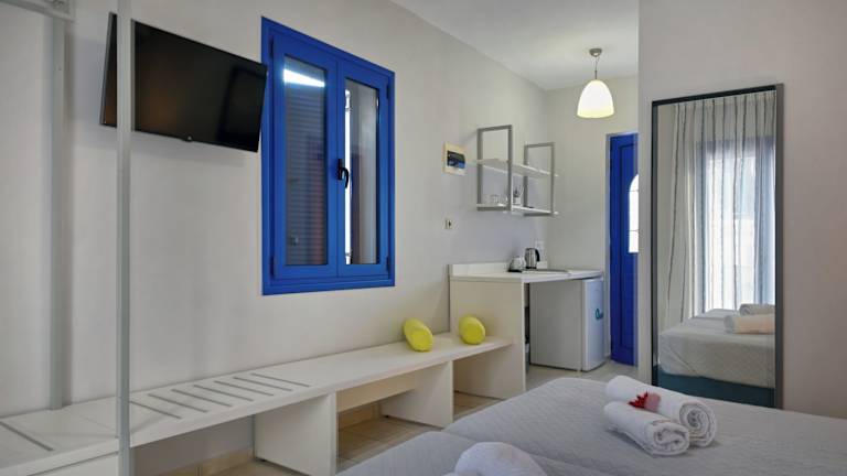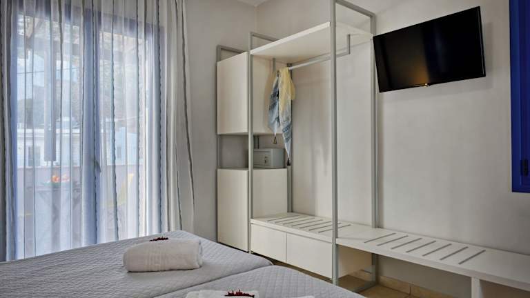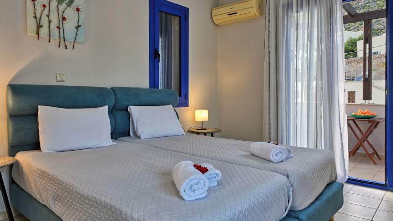 Die Zimmer im Sfakian Horizon sind komfortabel eingerichtet und verfügen über einen Kleiderschrank, einen TV und ein eigenes Bad. Hier können Sie sich nach einem erlebnisreichen Tag entspannen und zur Ruhe kommen.