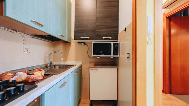 Die Ferienwohnung verfügt über ein Schlafzimmer, ein Wohnzimmer, eine voll ausgestattete Küche mit Kühlschrank und Kaffeemaschine sowie ein Badezimmer mit Dusche und Haartrockner. Handtücher und Bettwäsche werden bereitgestellt. Zudem sind die Räume klimatisiert und mit Heizung ausgestattet.