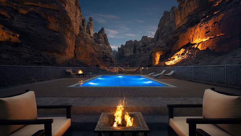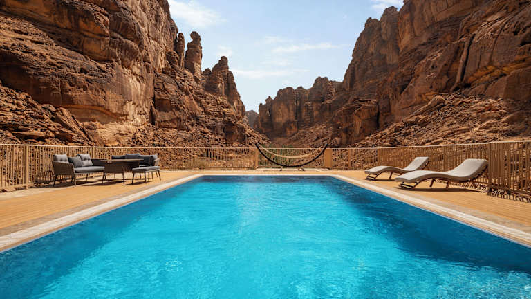 Das Shaden Resort in Al-Ula bietet eine luxuriöse Unterkunft mit erstklassigen Annehmlichkeiten wie einem Außenpool, einem Fitnessraum und einer Sauna. Die Zimmer sind komfortabel eingerichtet und verfügen über kostenlosem WLAN sowie Klimaanlage. Das Resort bietet auch ein erstklassiges Restaurant mit einer Auswahl an internationalen Gerichten. Genießen Sie Ihren Aufenthalt in diesem exklusiven Resort und erkunden Sie die umliegende Natur und Sehenswürdigkeiten.