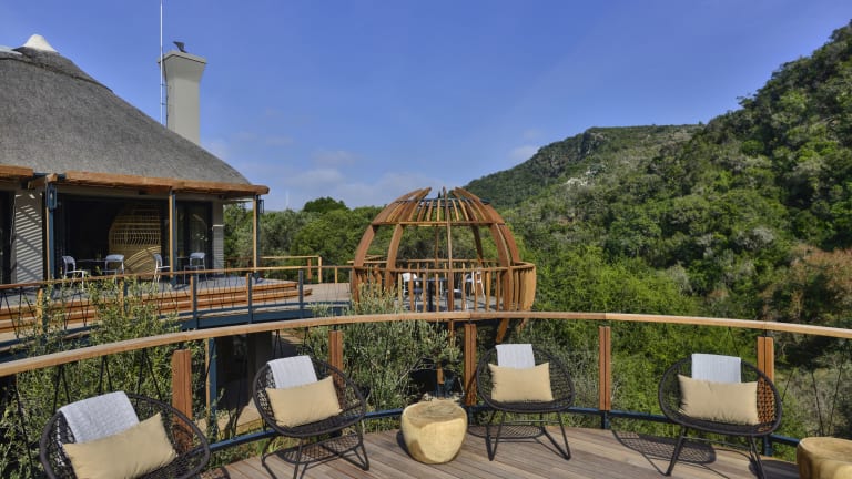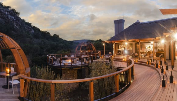 Lassen Sie sich zu einem afrikanischen Abenteuer entführen. Unsere Premium Lodge Eagles Crag bietet eine ultimative luxuriöse, private und atemberaubende Kulisse. Die Suiten sind aus Glas und Stein errichtet. Sie werden sich in den unverbauten Aussichten auf die umliegenden Felsformationen sonnen, über denen die Adler kreisen. Lounge im Obergeschoss mit offenem Kamin auf und Aussichtsdeck mit Feuerstelle Lounge im Untergeschoss mit Innenkamin, Fernseher und Billardtisch Fitnesscenter Souvenirladen Entspannungsbereich mit Hydrobad, Dampfbad und Sauna Essbereiche drinnen und im Freien WiFi Verbindung