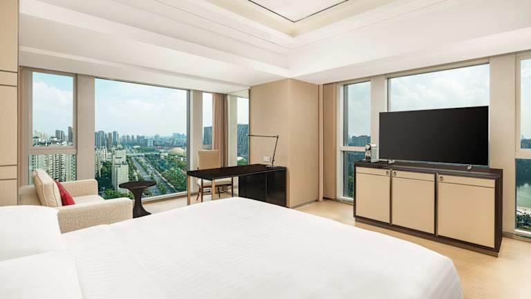 Die modernen Zimmer im Shanghai Marriott Hotel Parkview bieten eine entspannte Atmosphäre und sind mit allen Annehmlichkeiten ausgestattet, die Sie für einen angenehmen Aufenthalt benötigen. Genießen Sie den Flachbild-TV, die Klimaanlage, die Minibar und die komfortablen Markenmatratzen. Die Badezimmer verfügen über eine Dusche, eine Badewanne und einen Haartrockner. Einige Zimmer bieten einen schönen Blick auf den Garten.