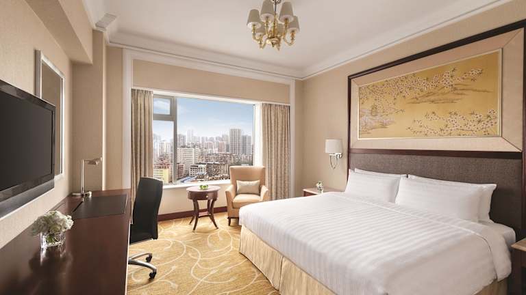 Das Shangri-La Hotel Wuhan verfügt über 442 geräumige, elegant und modern gestaltete Zimmer. Jedes Zimmer ist mit Sat-TV, einer Minibar und luxuriöser Bettwäsche ausgestattet. Die Badezimmer bieten kostenfreie Pflegeprodukte, Hausschuhe, Bademäntel und einen Haartrockner. Die Zimmer verfügen außerdem über einen Schreibtisch, ein Schließfach, ein Bügeleisen/-brett und kostenfreies WLAN.