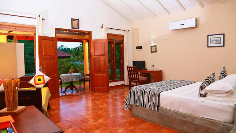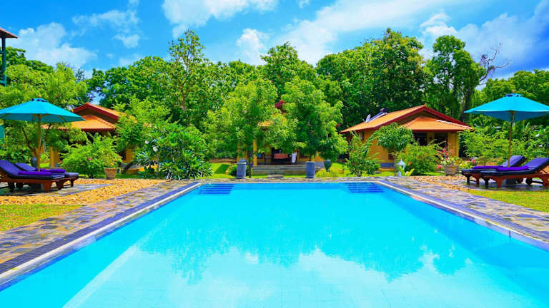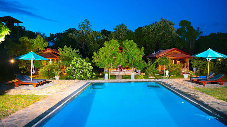 Erleben Sie einen luxuriösen Aufenthalt im Shangri-Lanka Village in Tissamaharama. Die Unterkunft bietet exklusive Bungalows mit privatem Pool und zwei schönen Gärten. Genießen Sie kostenloses WLAN, ein hauseigenes Restaurant und kostenlose Parkplätze. Die Bungalows sind mit einer Terrasse, Klimaanlage und einem gemütlichen Sitzbereich ausgestattet. Ein Essbereich im Freien, ein Safe und eine Minibar sorgen für zusätzlichen Komfort. Das freundliche Personal steht Ihnen bei der Organisation von Touren zur Verfügung und bietet einen praktischen Gepäckaufbewahrungsservice sowie einen Wäscheservice. Die Lage des Hotels ist ideal, um die umliegenden Nationalparks Bundala, Yala und Uda Walawe zu erkunden. Der internationale Flughafen Mattala Rajapaksa ist nur 9 km entfernt.