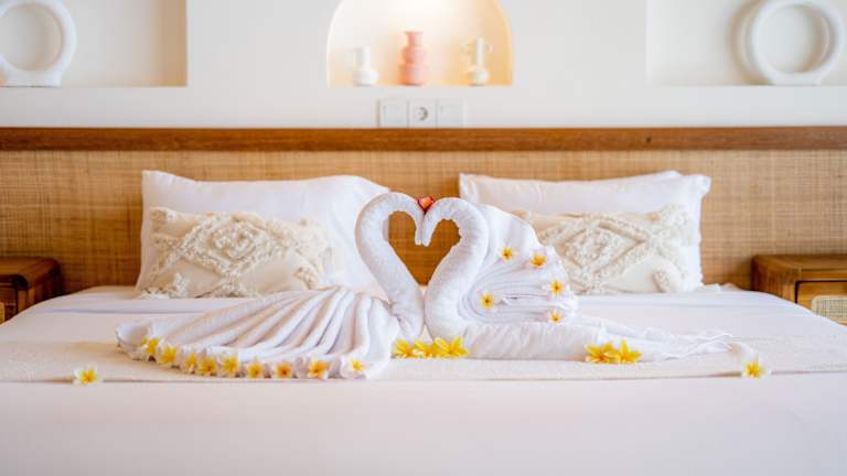 Die klimatisierten Zimmer sind mit einem eigenen Badezimmer und einem Kleiderschrank ausgestattet. Alle Zimmer bieten einen Blick auf den Pool. Weitere Annehmlichkeiten sind Nichtraucherzimmer, WLAN in allen Bereichen und tägliche Zimmerreinigung.