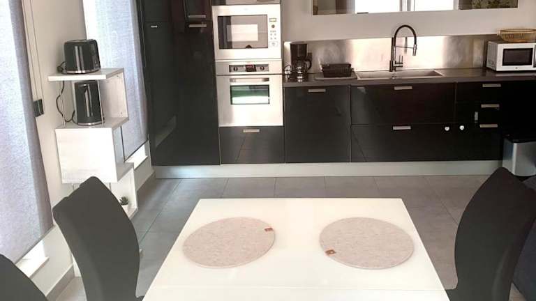 Die Ferienwohnung verfügt über ein Schlafzimmer und eine voll ausgestattete Küche, die den Gästen die Möglichkeit zur Selbstversorgung bietet.