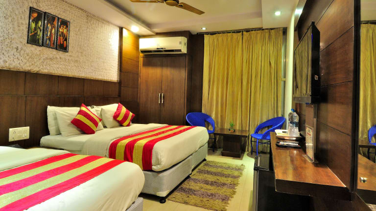 Das Hotel Shelton in Neu-Delhi bietet eine verkehrsgünstige Lage in der Nähe des Bahnhofs Delhi und des U-Bahnhofs Connaught. Es verfügt über kostenfreies WLAN, eine 24-Stunden-Rezeption und verschiedene Wellnessanwendungen. Das berühmte Restaurant auf dem Dach serviert authentische indische, chinesische und kontinentale Gerichte. Die Zimmer sind in neutralen Farben gehalten und bieten eine komfortable Ausstattung. Das Hotel ist der ideale Ausgangspunkt, um die Sehenswürdigkeiten der Stadt zu erkunden.