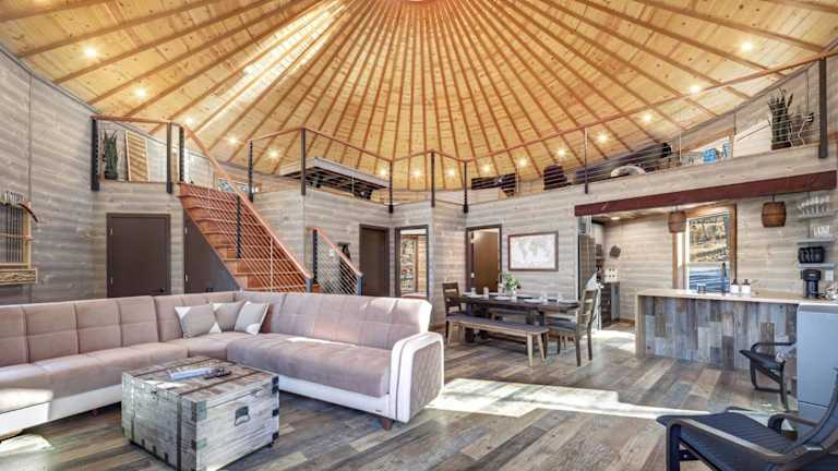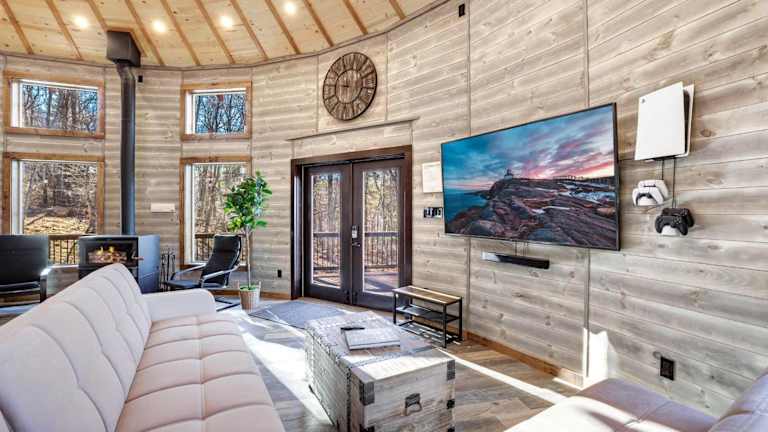 Die klimatisierte Villa im Shenandoah Yurt verfügt über 3 Schlafzimmer, ein Wohnzimmer, eine voll ausgestattete Küche mit einem Kühlschrank und 2 Badezimmer mit einem Whirlpool und einem Haartrockner. Handtücher und Bettwäsche werden gestellt, um Ihren Aufenthalt so angenehm wie möglich zu gestalten.