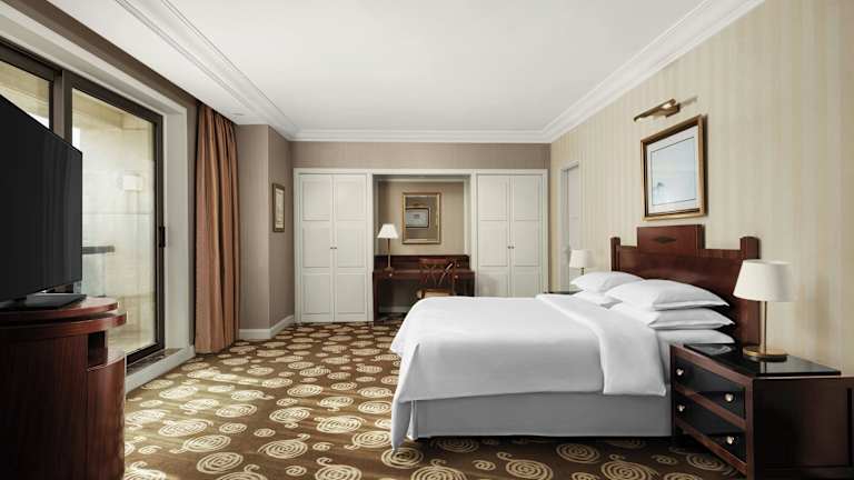 Die Zimmer sind mit einer Klimaanlage, Heizung und einem Stadtblick ausgestattet. Sie verfügen über ein Doppel- oder Kingsize-Bett, einen Safe, eine Minibar und eine Tee-/Kaffeestation. Zur technischen Ausstattung gehören ein Telefon, Sat-TV, Radio, CD- und DVD-Player sowie kostenfreies WLAN. Bäder sind mit einer Dusche und Haartrockner ausgestattet und bieten Kosmetikartikel und Handtücher. Rollstuhlgerechte Zimmer sind ebenfalls verfügbar.