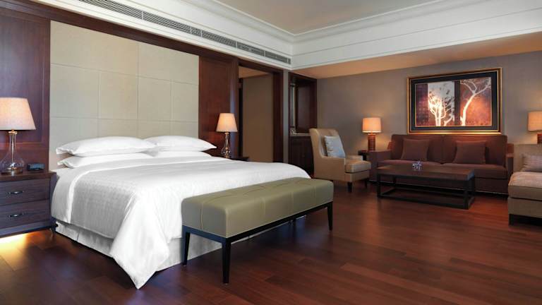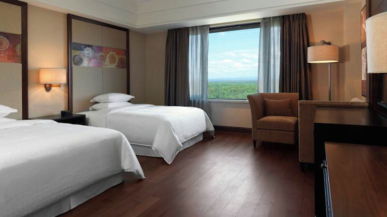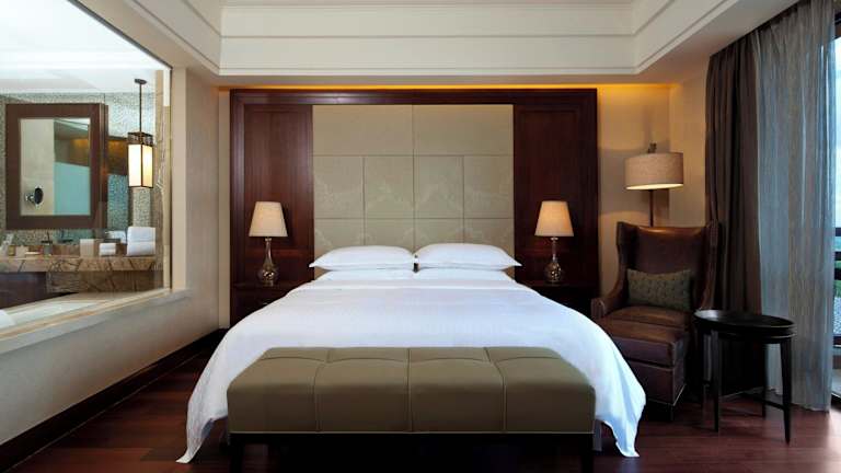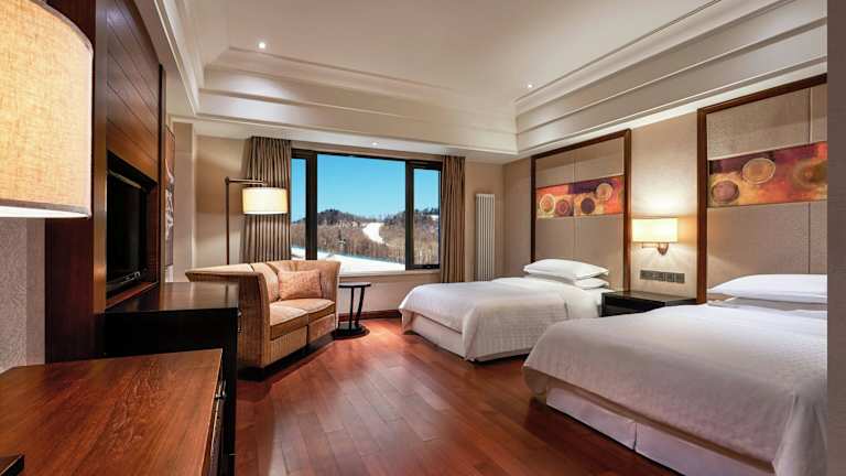 Die Zimmer im Sheraton Changbaishan Resort sind luxuriös eingerichtet und bieten einen atemberaubenden Blick auf die Berge oder das Skigebiet. Jedes Zimmer ist gut ausgestattet und bietet besonderen Schlafkomfort, einen Flachbild-Sat-TV, Highspeed-Internetzugang und eine iPod-Dockingstation. Das geräumige Badezimmer verfügt über eine große Badewanne und eine separate Regendusche.