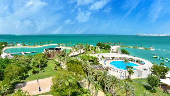 Das Sheraton Grand Doha Resort & Convention Hotel ist ein elegantes Luxushotel, das auf einem über 10.000 qm großen Grundstück errichtet wurde. Die Atmosphäre ist geprägt von Luxus und Wohlgefühl. Das Hotel bietet eine atemberaubende Aussicht auf die Skyline von Doha und das Meer, umgeben von schönen Gartenanlagen. Es verfügt über 371 Zimmer und zahlreiche Annehmlichkeiten, darunter drei Außenpools, Wellness- und Freizeitangebote sowie Konferenzräume.