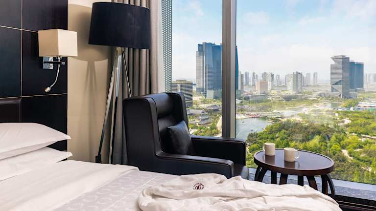Die Zimmer sind klimatisiert und mit Teppichböden, einem Doppelbett oder Sofabett ausgestattet. Weitere Annehmlichkeiten sind Safe, Minibar, Schreibtisch, Tee-/Kaffeemaschine und ein Bügelset. Die Badezimmer sind mit Dusche und Badewanne ausgestattet. Zu den Ausstattungsmerkmalen gehören kostenfreies WLAN, Sat-TV, Haartrockner und Bademäntel. Rollstuhlgerechte Zimmer sind buchbar.
