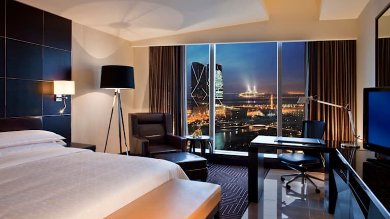 Das Sheraton Incheon Hotel ist ein modernes, rauchfreies Hotel mit 319 Zimmern auf 22 Stockwerken. Es bietet einen Aufzug, ein Business-Center, ein Restaurant, eine Lobby-Lounge und eine Bar. Wichtige Dienstleistungen wie ein 24-Stunden-Zimmerservice, Wäscheservice, ein Friseur und ein Shuttlebus stehen zur Verfügung. Behindertengerechte Einrichtungen sind vorhanden. Die Rezeption ist in englischer und französischer Sprache besetzt. Ein Garten ermöglicht zusätzliche Entspannung.